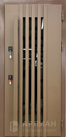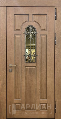 Железная входная дверь в частный дом со стеклом отделка №21