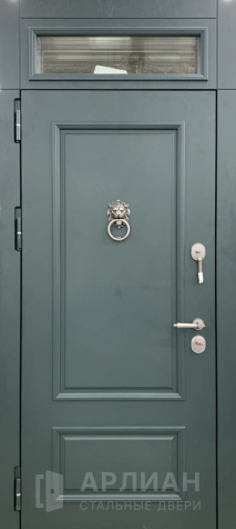 Металлическая входная дверь в коттедж с верхней фрамугой №10