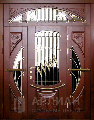 Входная парадная дверь с ковкой отделка натуральным деревом №79